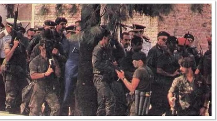 -Tenían armamento ruso, lanzachoetes, granadas, fusiles, pistolas. Y cuando llegan a las distintas armerías van sumando más armas. Estaban bien armados. El comisario Re pierde las dos piernas por un lanzacohetes que sale de la guardia. El teniente coronel Nani quiere ir a recuperar la guardia y recibe un disparo cercano en el ojo.