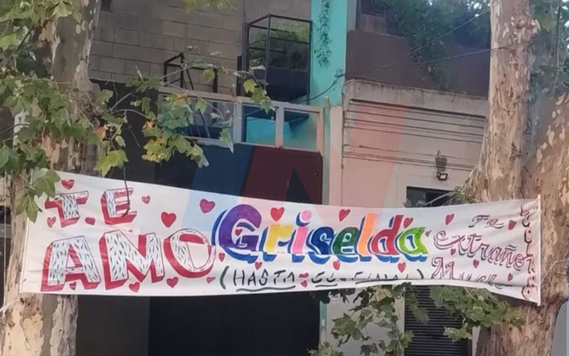 En el video, el “angelito” demostró que el dato era cierto. “Amores, miren esto. Impresionante. Bueno gente, confirmado”, detalló mostrando el cartel en cuestión. Las imágenes muestran que el pasacalles dice: “Te amo Griselda. Hasta el fin. Te extraño mucho. Luciano”.