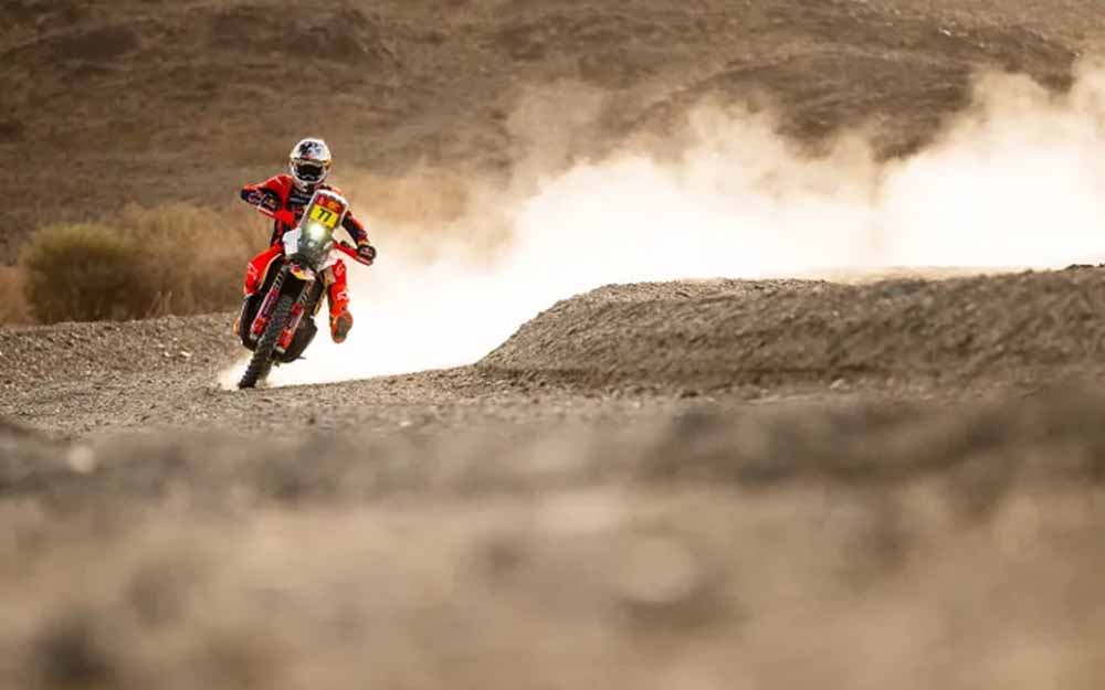 Con una actuación sólida en el tramo más extenso del rally, Luciano Benavides superó a Sanders y quedó primero en la clasificación de motos.