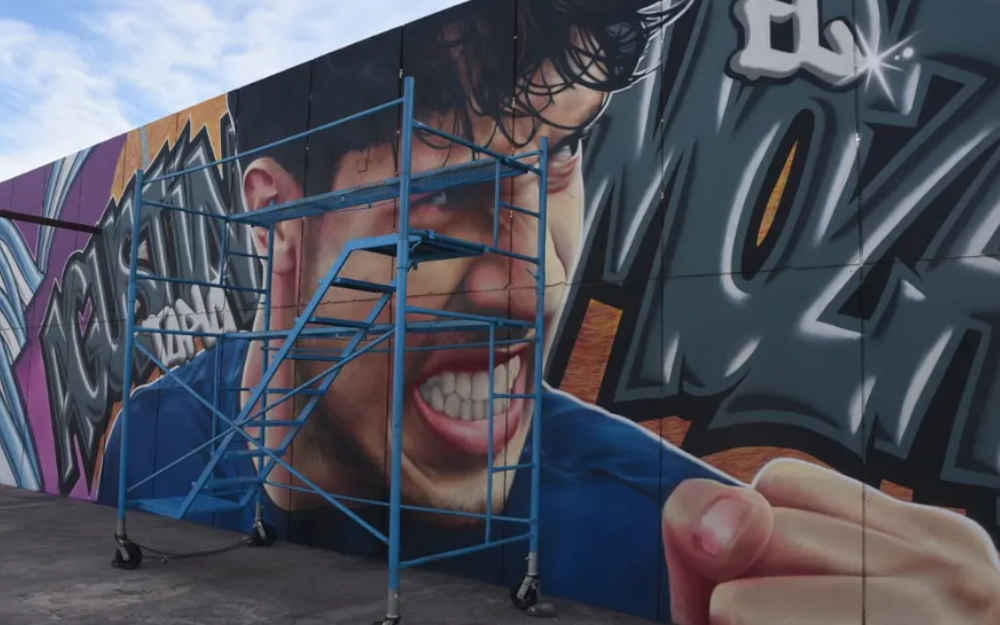 “El proyecto lo presentamos al intendente Gustavo Saadi y varias áreas del municipio lo impulsaron. Es un esfuerzo colectivo que combina arte y deporte”, explicó Miglia. Con una técnica mixta de látex exterior y aerosoles y un diseño digital que asegura proporciones perfectas, el mural está a punto de concluir.