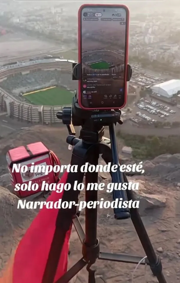 Aprovechó la geografía que rodea al Estadio Monumental de Lima, subió a uno de los cerros linderos, instaló su celular en un trípode, encendió un aro de luz y comenzó a relatar el partido como si estuviera en una cabina profesional. A su lado estuvo su hermano, quien lo acompañó hasta la cima y ofició como asistente improvisado. Mientras 80.000 personas vivían la final desde las tribunas, en lo alto del cerro “Pol Deportes” narraba cada jugada en vivo a través de TikTok, con la misma emoción que cualquier relator consagrado.