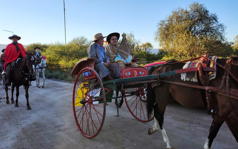 Montados a caballo, en sulkys, exhibiendo sus estandartes, banderas argentina y papal, los jinetes hicieron el extenso recorrido, precedidos por la Policía Montada y la Imagen peregrina de la Virgen del Valle, luciendo su ponchito de vicuña, en brazos del obispo diocesano, Mons. Luis Urbanč, acompañado por el padre Domingo Chaves, asesor de la pastoral de los gauchos.