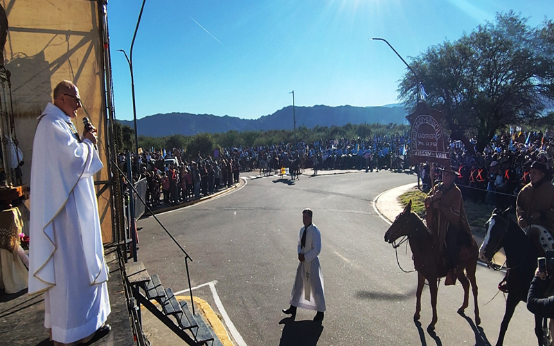 En su homilía, el Obispo dio la bienvenida “a esta hermosa peregrinación que está culminando en el ingreso al Santuario de la Gruta; con qué alegría la Santísima Virgen del Valle los ha acompañado a todos ustedes que han venido de distintos puntos a agradecerle, a homenajearla, a agradecerle por el año y el beneficio de la lluvia, y también a pedirle cosas que llevamos en nuestro corazón”.