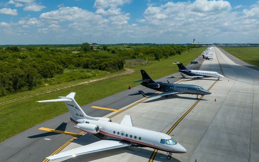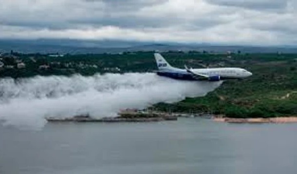 La aeronave participó de un simulacro de combate contra incendios forestales.