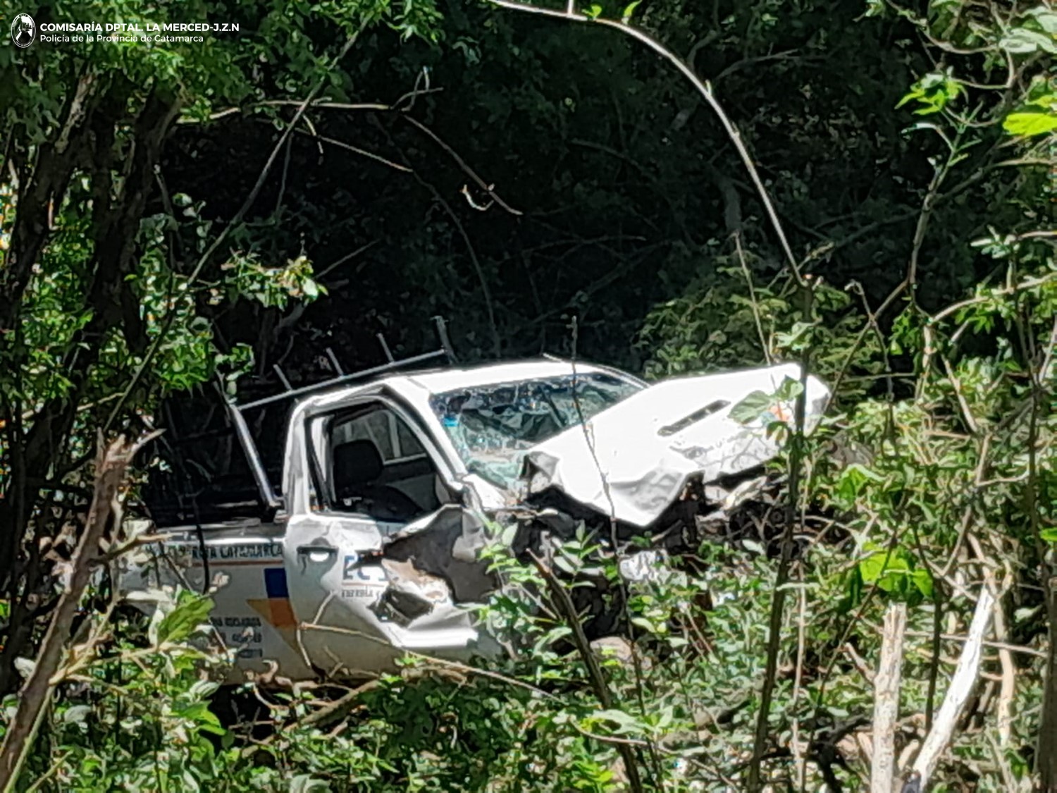 El vehículo, una camioneta perteneciente a la empresa EC SAPEM, se precipitó unos 10 metros al costado de la Ruta Nacional 38. Las víctimas fueron asistidas por personal médico del hospital zonal. –eldiariodecatamarca.com