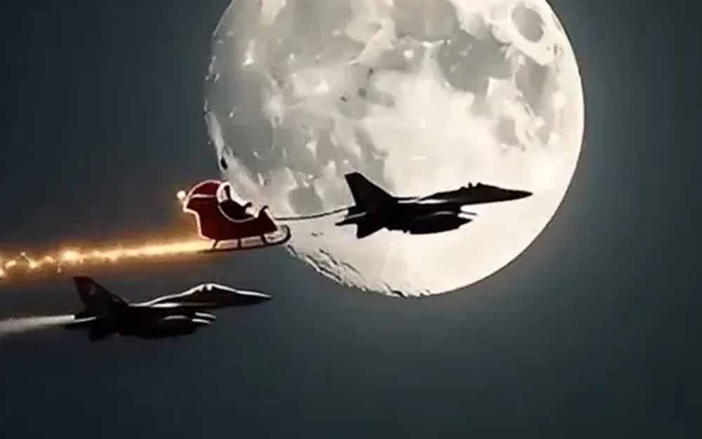 La institución difundió un video de fin de año con una puesta en escena épica, donde los nuevos cazas F-16 acompañan el trineo navideño.