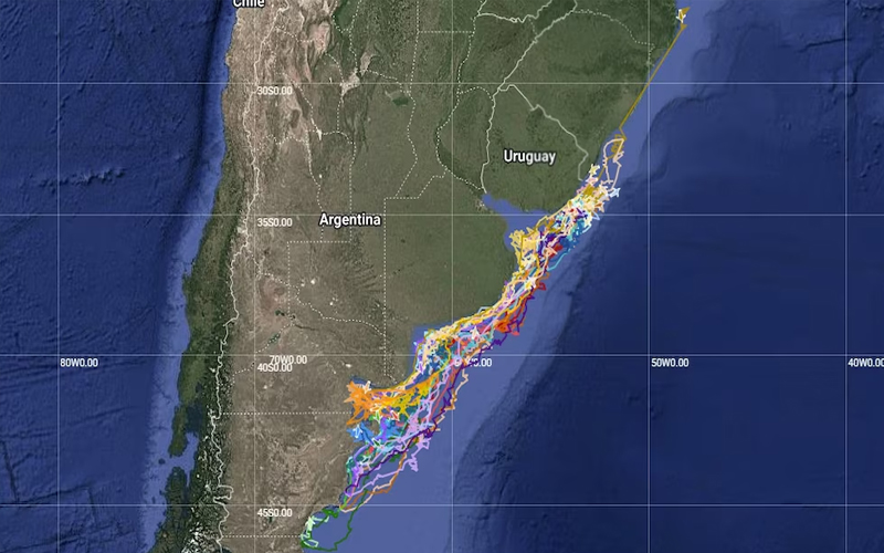 Las velocidades y estilos de viaje también varían. “Sabemos que pueden recorrer hasta nadando 174 kilómetros en un solo día. Más que velocidades extremas, lo que observamos son comportamientos muy distintos. Algunos muestran trayectorias muy directas; otros presentan recorridos complejos”, señala. El caso de “Colapinto” se destacó por su desplazamiento marcado, mientras que “Messi” realizó trayectorias llenas de curvas, evidenciando una búsqueda intensiva de alimento: “Sus recorridos parecían ‘gambetas’ en un mapa, como las que hace en el área durante un partido”.