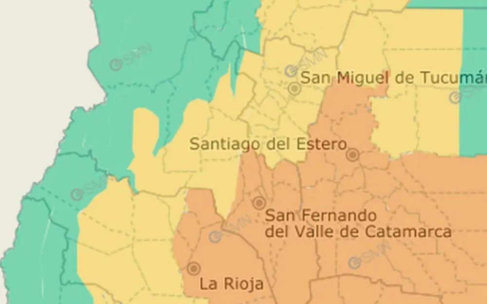 Es que, de acuerdo al mapa meteorológico, esta muestra a la provincia pintada de naranja y amarillo, en señal de alerta para este 24 por la noche y buena parte del 25- eldiariodecatamarca.com