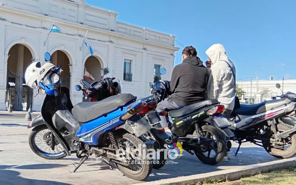 Fue en Plaza 25 de Agosto, un grupo de motociclistas se reunieron con el objeto de manifestarse para que desde el CD se contemple la inclusión de estos vehículos para el servicio de traslado de personas a través de las app.- eldiariodecatamarca.com