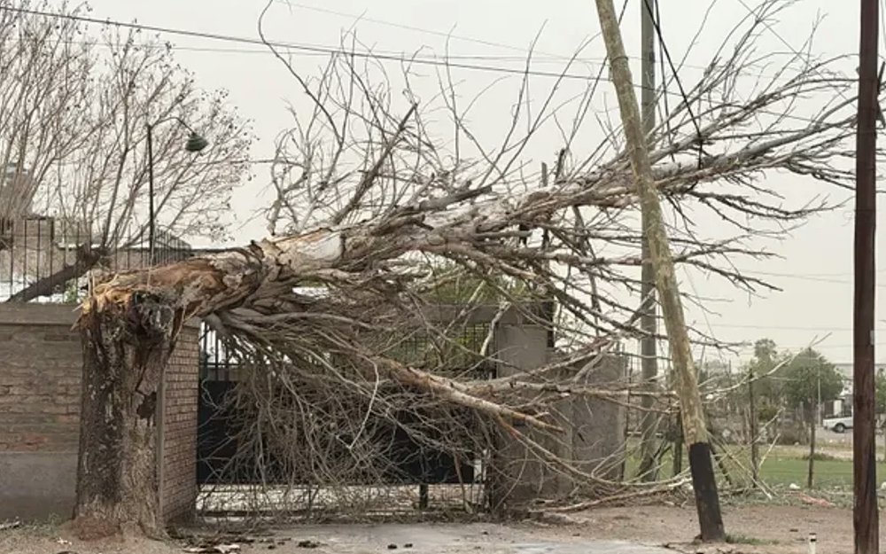 Un fuerte temporal golpeó a gran parte de la provincia con ráfagas intensas, caída de árboles y postes, cortes de luz y suspensión de vuelos.