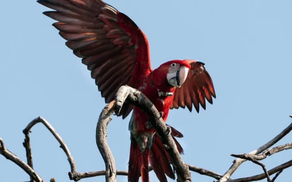Un ejemplar de guamacayo rojo que formaba parte de un proyecto de conservación de la especie fue abatido por el impacto de una gomera.