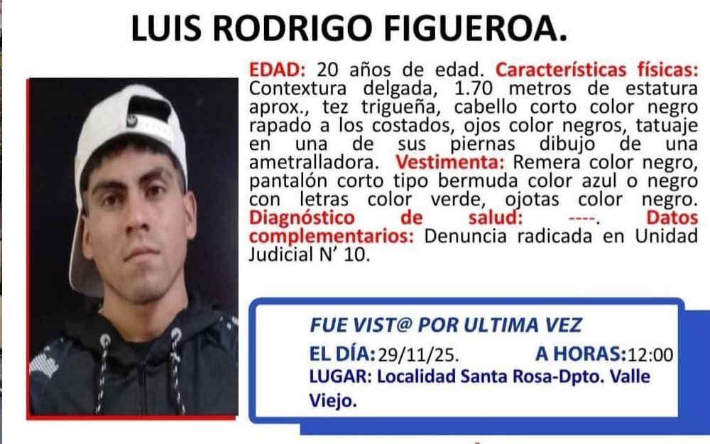 El joven de 20 años fue visto por última vez el pasado 29 de noviembre, en la localidad de Santa Rosa. Se solicita a la comunidad cualquier información que pueda ayudar a encontrarlo. –eldiariodecatamarca.com