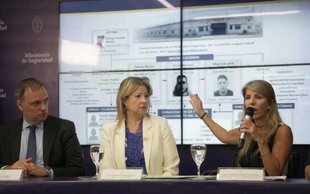 Acompañada por el jefe de Gabinete, Manuel Adorni, y la jueza federal Sandra Arroyo Salgado, Monteoliva sostuvo que los implicados se contactaron con la víctima a través de una app de citas con un perfil falso denominado “Julieta Ayelén Cardozo”.