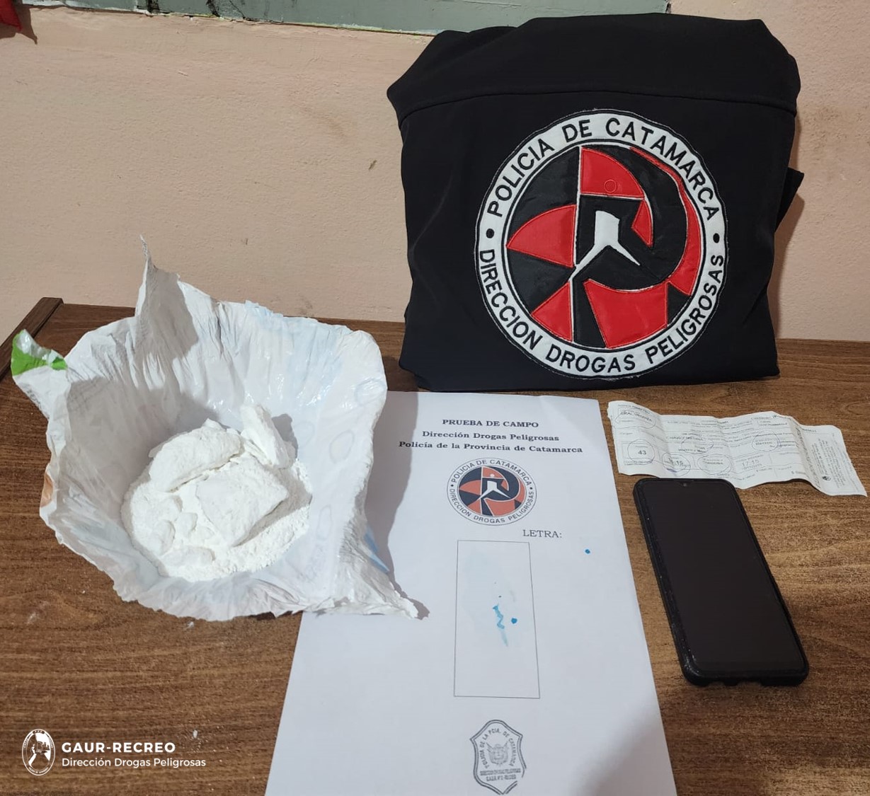 Durante el operativo, los efectivos detuvieron un colectivo de larga distancia que viajaba desde la ciudad de Frías, en la provincia de Santiago del Estero. Al identificar a los pasajeros, los agentes descubrieron que una mujer de 28 años ocultaba en su asiento un paquete con una sustancia tipo polvo granulado de color blanco.