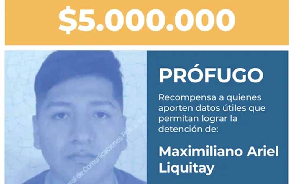 El Gobierno y el Ministerio de Seguridad Nacional ofrecen una recompensa para lograr la detención de Maximiliano Ariel Liquitay, un hombre que desde hace dos años posee un pedido de captura nacional e internacional por el delito de lavado de activos.