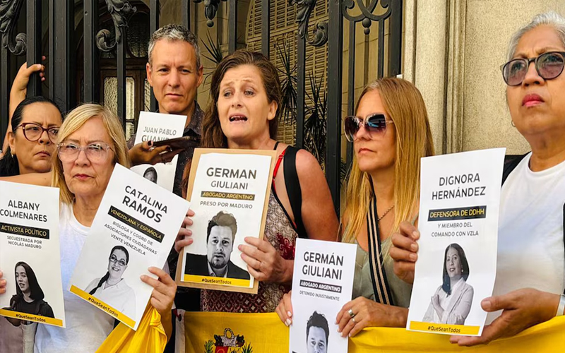 Familiares de los rehenes argentinos secuestrados en Venezuela se reunieron este viernes frente a la sede de la Nunciatura Apostólica en Buenos Aires, y reclamaron la intervención del Vaticano para lograr la liberación de sus seres queridos, ante la demora del proceso de excarcelación al que se comprometió el régimen chavista.