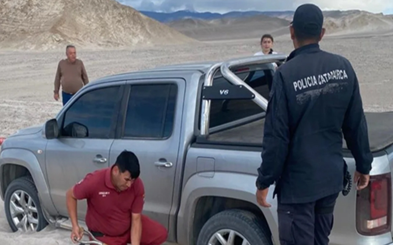 Numerarios del Grupo Especial de Rescate (GER) y de la Subcomisaría El Peñón se constituyeron en el Campo de Piedra Pómez, departamento Antofagasta de la Sierra, donde rescataron a cuatro personas de ambos sexos, de 20, 23, 59 y 70 años de edad, todas oriundas de la Provincia de Misiones.