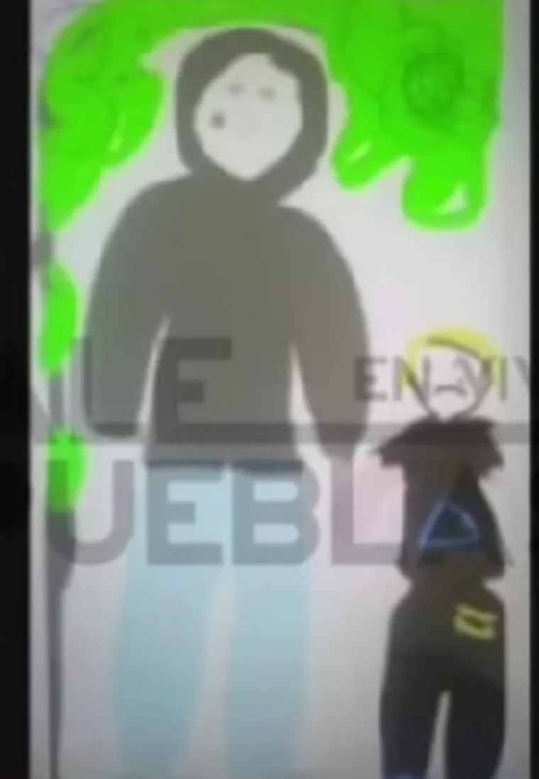 En dicho dibujo se observa a un hombre vestido con un buzo negro con capucha y con un pantalón celeste. Junto al sospechoso, se observa a un niño (Loan) quien lleva una remera y un pantalón negro.