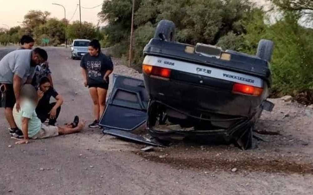 En el lugar, un automóvil Peugeot 504 de color gris conducido por un hombre de 77 años de edad, terminó volcando, en circunstancias que se investigan.