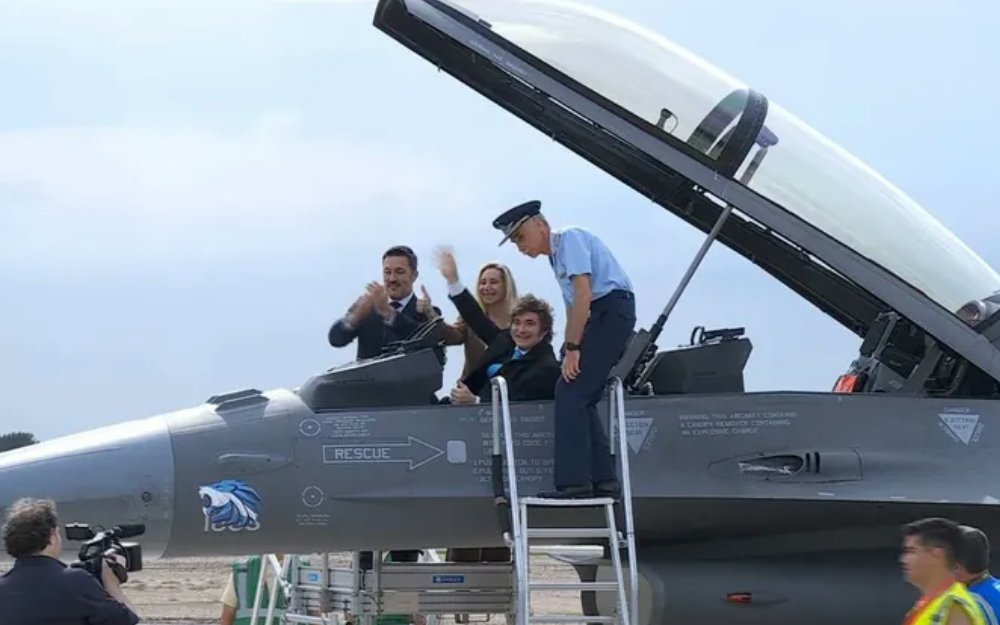 El Presidente Javier Milei encabezó el acto por la incorporación de los aviones caza F-16, defendió la modernización militar y luego se subió a una nave.
